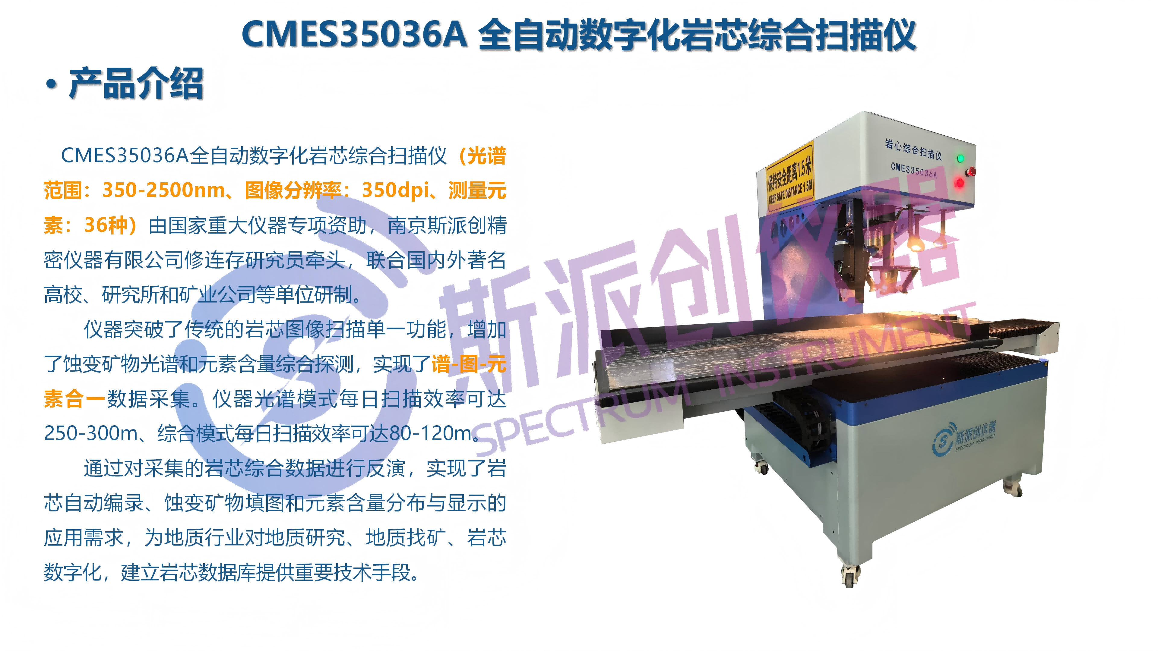 CMES35036A全自动数字化岩芯综合扫描仪(光谱范围:350-2500nm、图像分辨率:350dpi、测量元素:36种)。