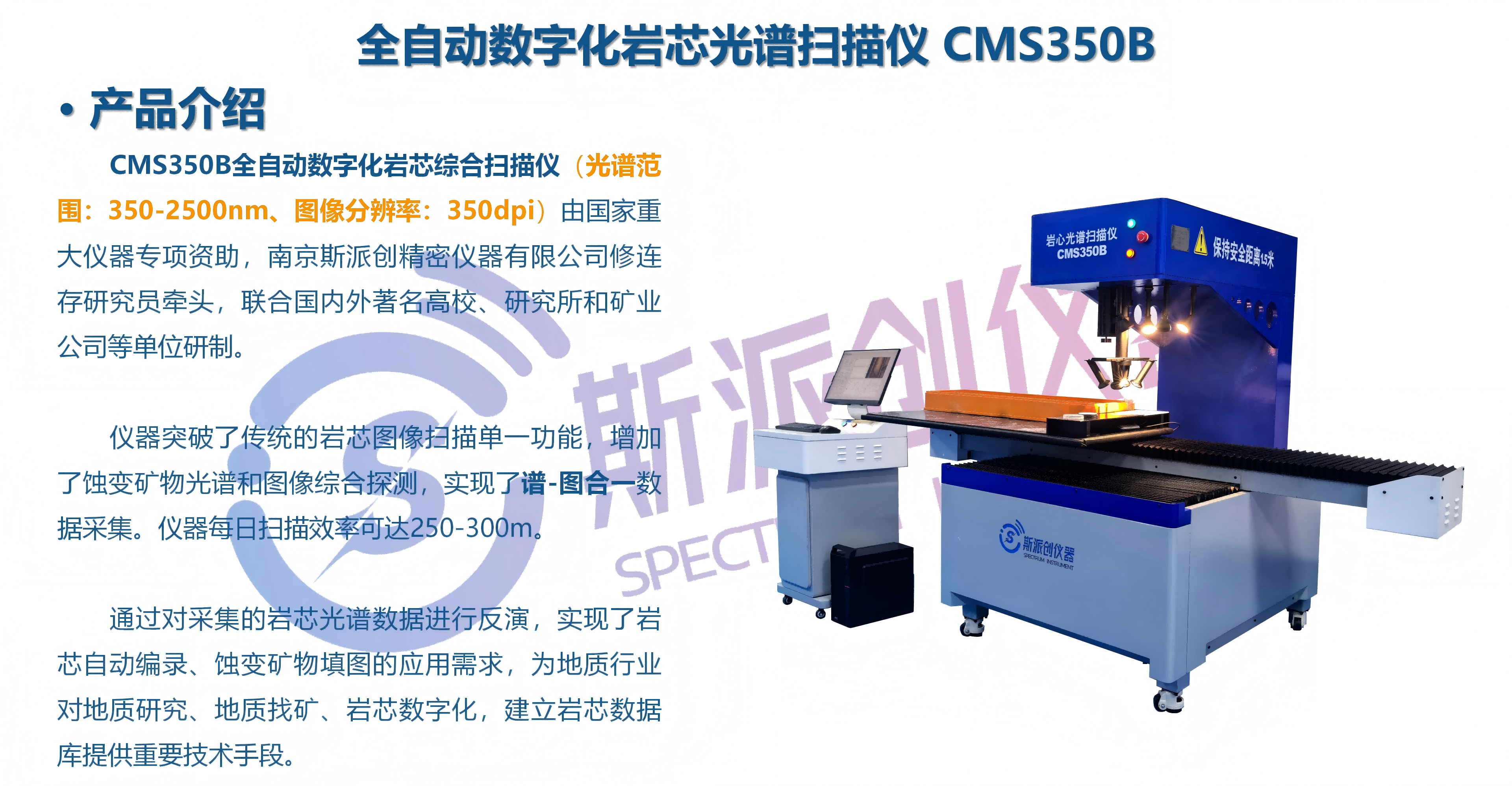 CMS350B全自动数字化岩芯综合扫描仪(光谱范围:350-2500nm、图像分辨率:350dpi)。